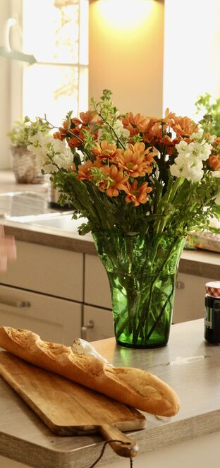- Einrichtungs-Plus wie italienische Steinfliesen, massive, heimische Douglasien-Holzfußböden, hohe Decken, antike Möbel