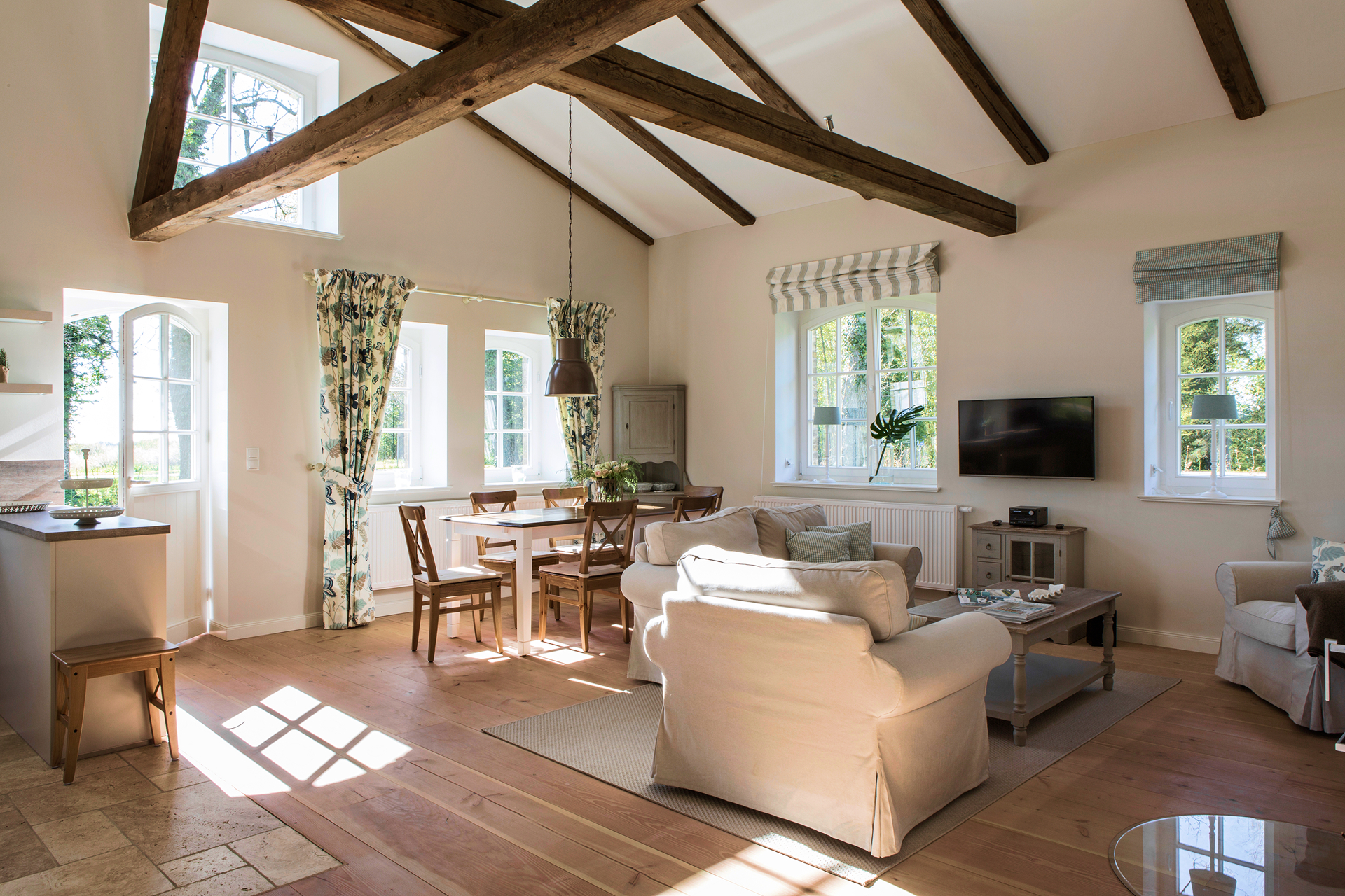 Die acht Ferienwohnungen auf dem Hofgelände wurden hochwertig renoviert und der Charme der alten Gebäude dabei erhalten. Eingerichtet im skandinavischen Stil mit vielen Naturmaterialien stehen sie zum Mieten bereit. Ob zu zweit, mit der Familie oder mit Freunden – hier finden Sie Ruhe und Erholung!