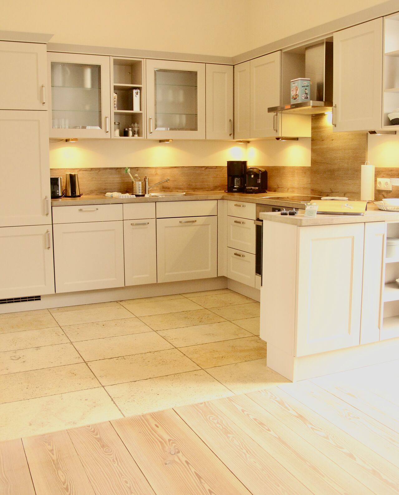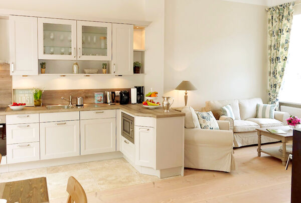 Alle Küchen sind voll ausgestattet mit elektrischen Geräten wie Induktionsherd, Backofen, Mikrowelle, Kühlschrank, Gefrierschrank (bei den 2-Personen-Wohnungen Gefrierfach), Geschirrspüler, Kaffeemaschine, Bosch-Kapsel-Maschine, Wasserkocher, Toaster.