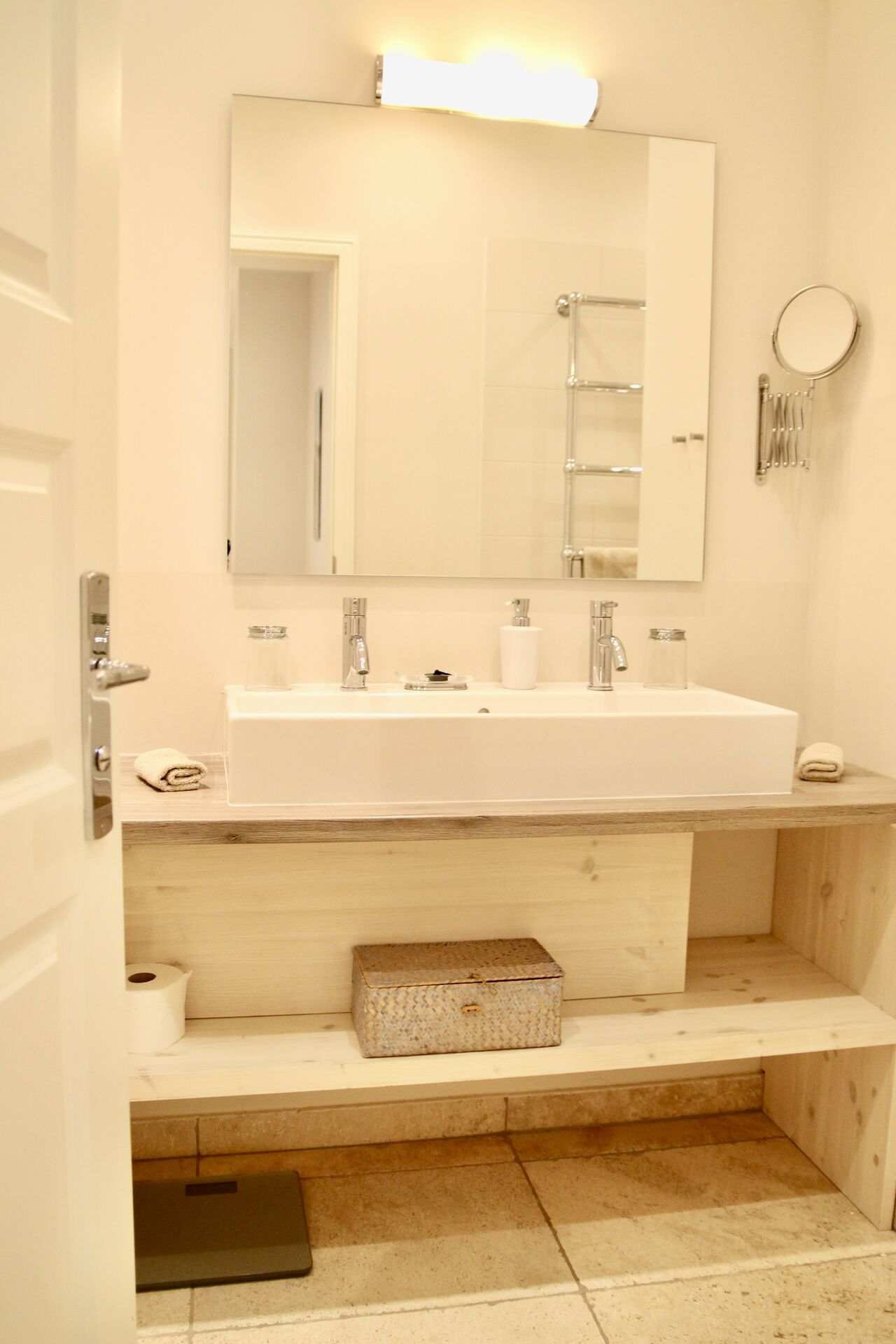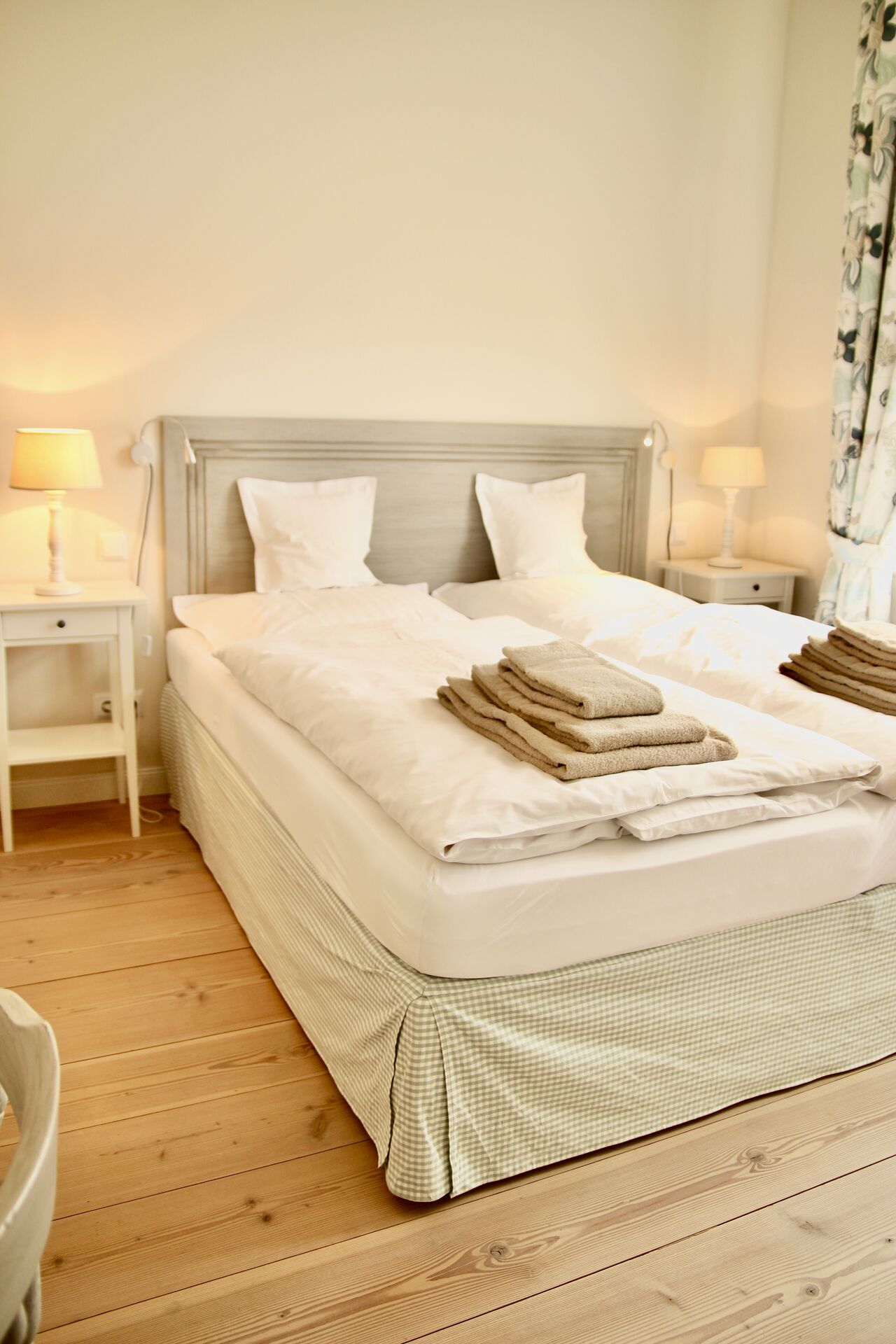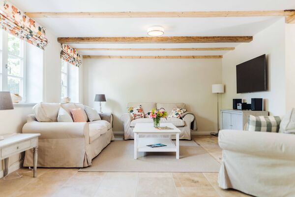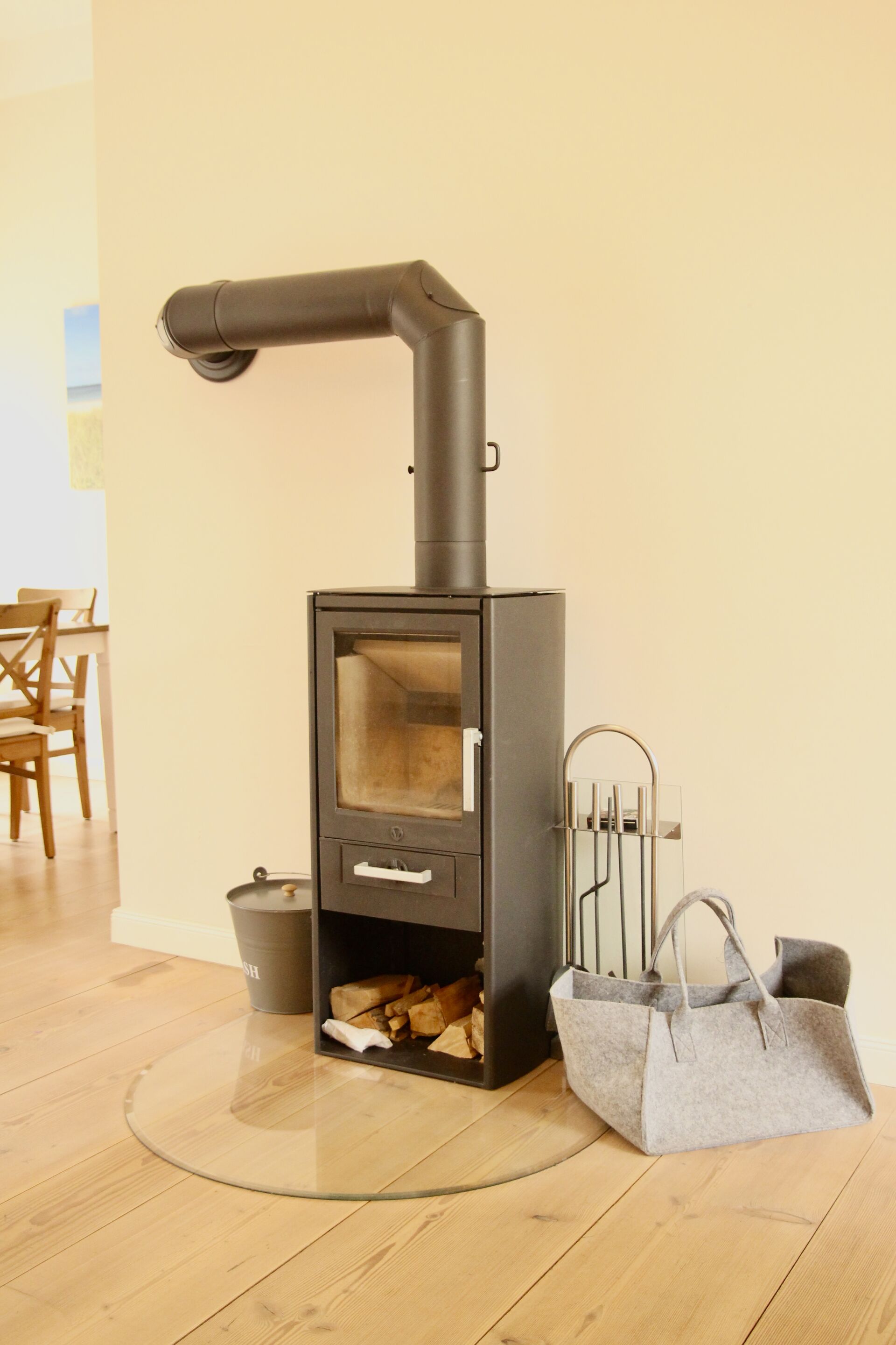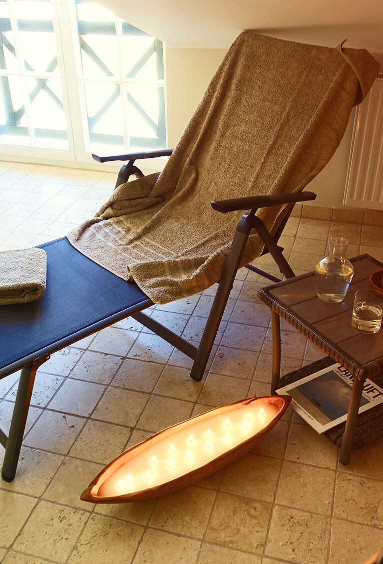 Die Böden in den Bädern und der Küche sind mit italienischen Steinfliesen und Fußbodenheizung und in den Wohnräumen mit massivem, heimischen Douglasien-Holz ausgestattet. Die Wohnung verfügt über Waschmaschine und Trockner und einen Abstellraum. Die Benutzung der Saunen (Dampf- und finnische Sauna) im Nebengebäude ist für unsere Gäste im Preis inbegriffen. Holz für den Kaminofen steht Ihnen kostenfrei zur Verfügung. Gerne können Sie auch unseren morgendlichen Brötchen-Service (März bis Oktober) nutzen. Für Ihre Fahrräder stellen wir einen sicheren Unterstand bereit.