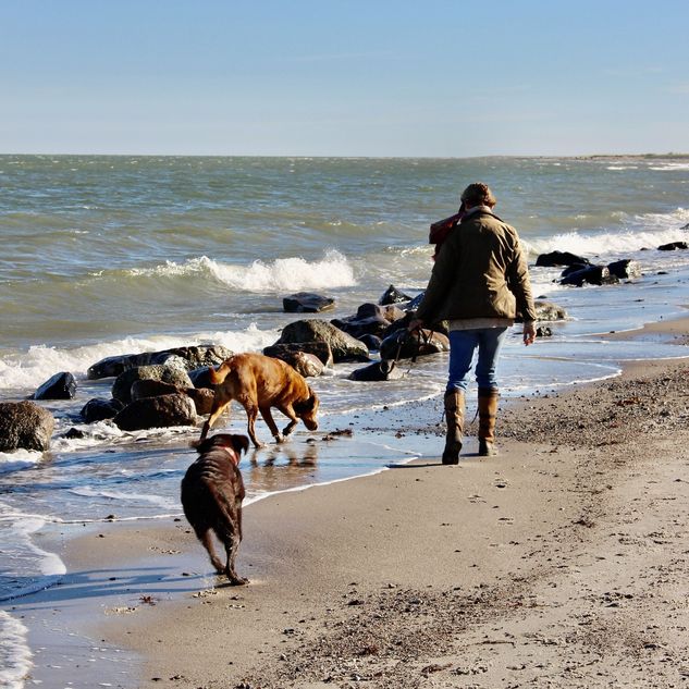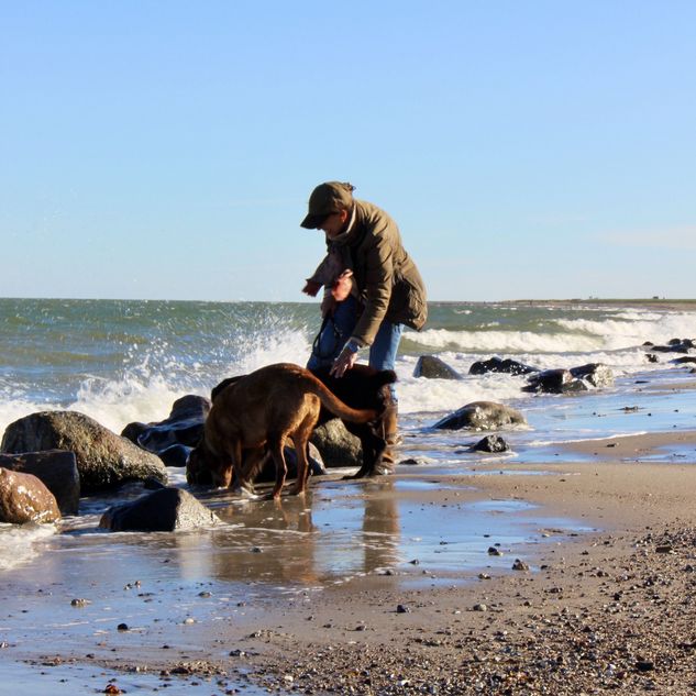 Und wenn Sie einfach nur in der Ferienwohnung relaxen möchten, können Sie Ihren Hund auf der Terrasse Ihrer Wohnung mit einer Laufleine anleinen, wir haben überall Ringe dafür angebracht. Einen Waschplatz mit warmen Wasser finden Sie ebenfalls auf dem Gutshof, so dass Sie Ihren Hund nach dem Toben am Meer einfach von Sand und Dreck befreien können. Zum anschließendem Abtrocknen liegt im Hundekorb Ihrer Ferienwohnung ein Handtuch bereit.
