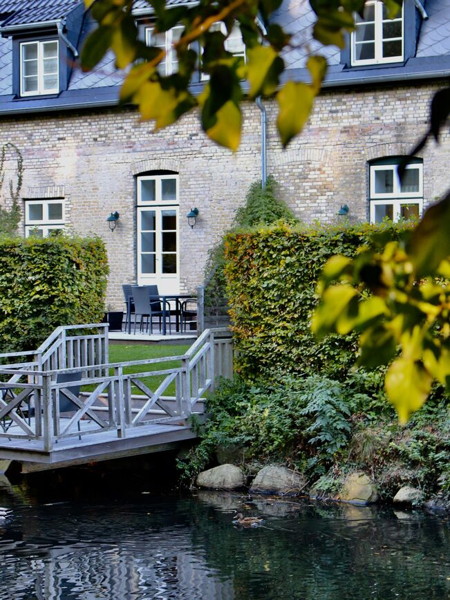 - Ausblick-Besonderheit von über dem Burggraben schwebenden Terrassen auf die Schlei