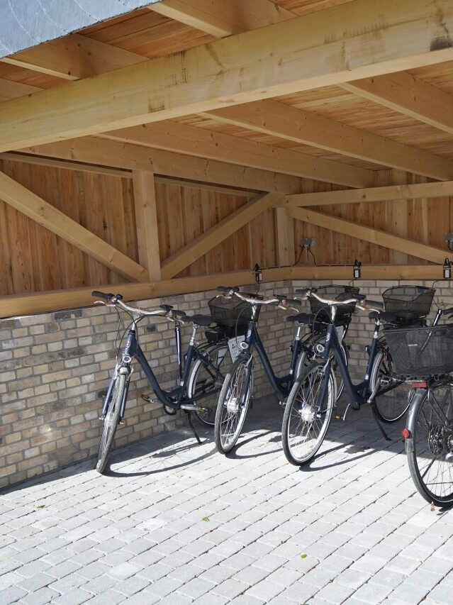 - Großer Fahrradunterstand mit mehreren Lademöglichkeiten