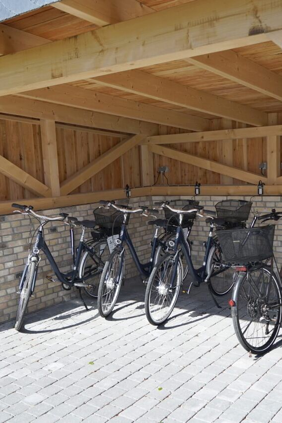Wenn Sie selber ein Fahrrad mitbringen möchten, steht Ihnen bei uns auf Gut Buckhagen ein großzügiger Fahrrad-Schuppen zum Unterstellen zur Verfügung. E-Bikes können Sie an mehreren elektrischen Anschlüssen kostenlos aufladen.