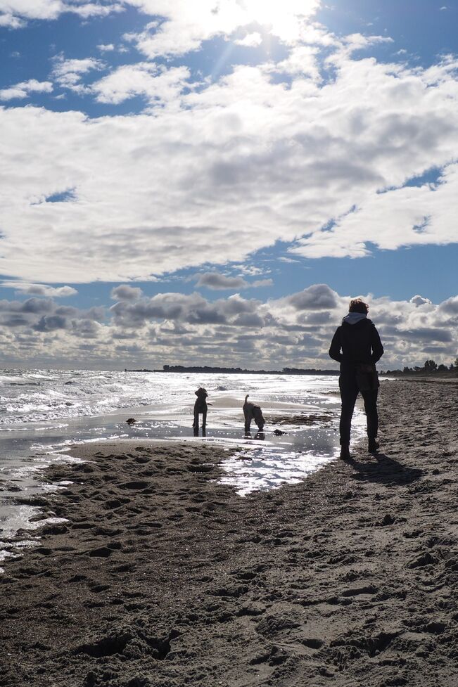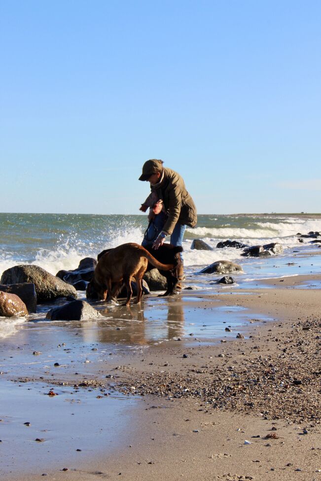 Und wenn Sie einfach nur in der Ferienwohnung relaxen möchten, können Sie Ihren Hund auf der Terrasse Ihrer Wohnung mit einer Laufleine anleinen, wir haben überall Ringe dafür angebracht. Einen Waschplatz mit warmen Wasser finden Sie ebenfalls auf dem Gutshof, so dass Sie Ihren Hund nach dem Toben am Meer einfach von Sand und Dreck befreien können. Zum anschließendem Abtrocknen liegt im Hundekorb Ihrer Ferienwohnung ein Handtuch bereit.